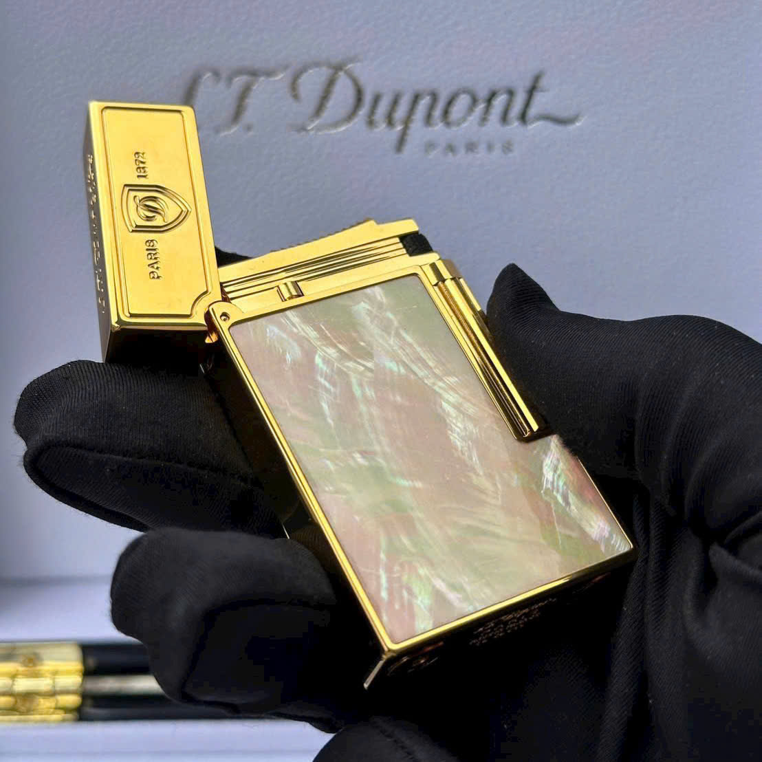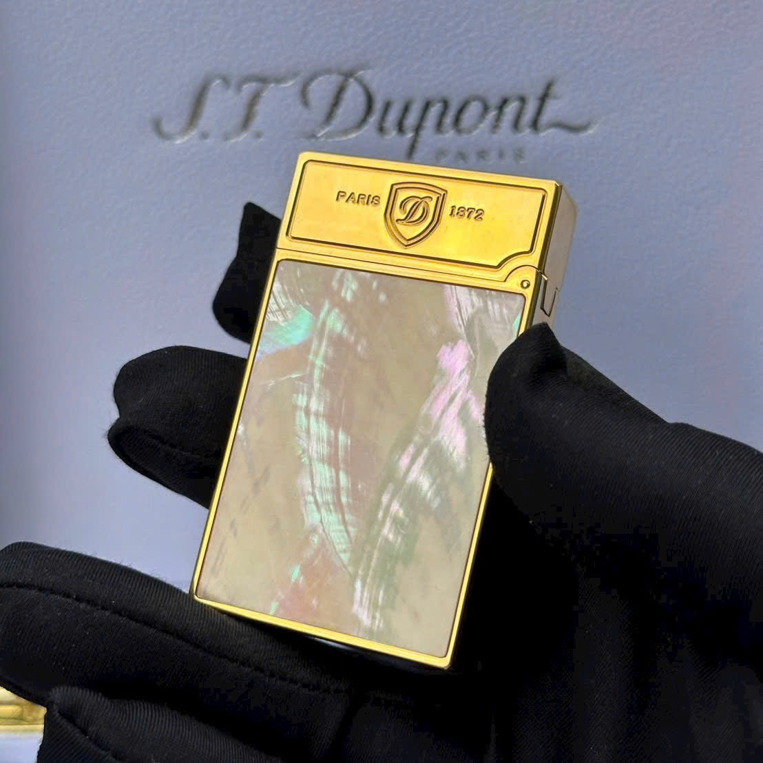 Bật lửa Dupont HongKong Khảm Trai Hồng viền Vàng phiên bản Paris 1872
